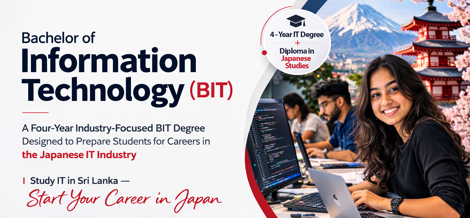 The Bachelor of Information Technology (BIT) at Lanka Nippon BizTech Institute (LNBTI) is a unique four-year degree program designed to prepare students for professional careers in the global IT industry, particularly in Japan.