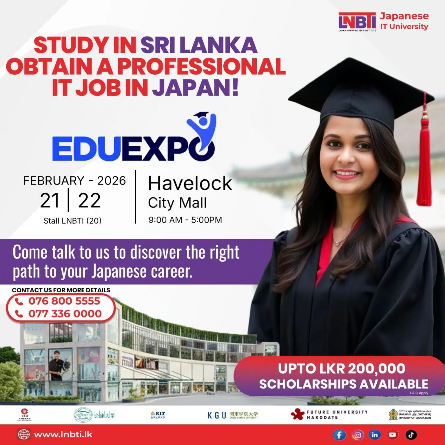 Still unsure whether studying in Sri Lanka can truly lead to a professional IT career in Japan? Meet the LNBTI team at EduExpo 2026 and speak directly with our counselors to explore globally recognised IT degree pathways linked to Japan. 📍 Venue: Havelock City Mall📅 Dates: 21 & 22 February 2026⏰ Time: 9:00 AM – […]