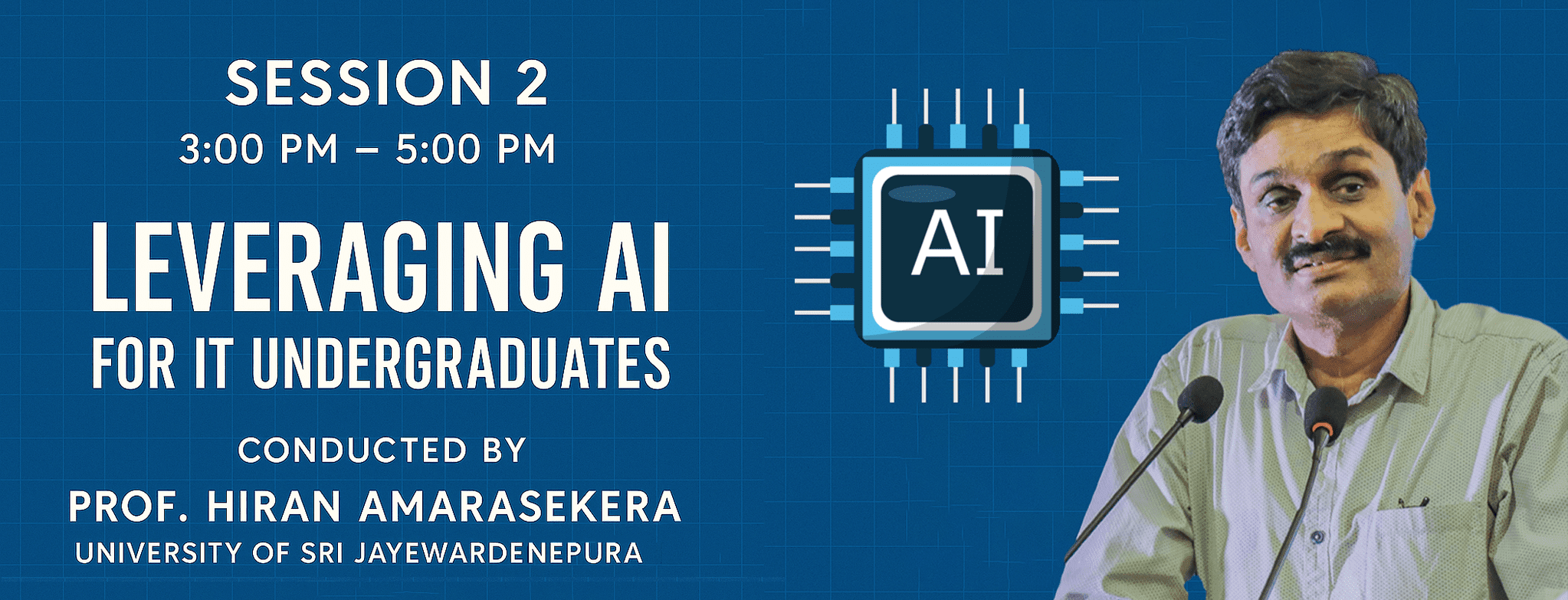 Leveraging AI for IT Undergraduates by Prof. Hiran Amarasekera from the University of Sri Jayewardenepura, exploring the use of Artificial Intelligence for academic and professional development.