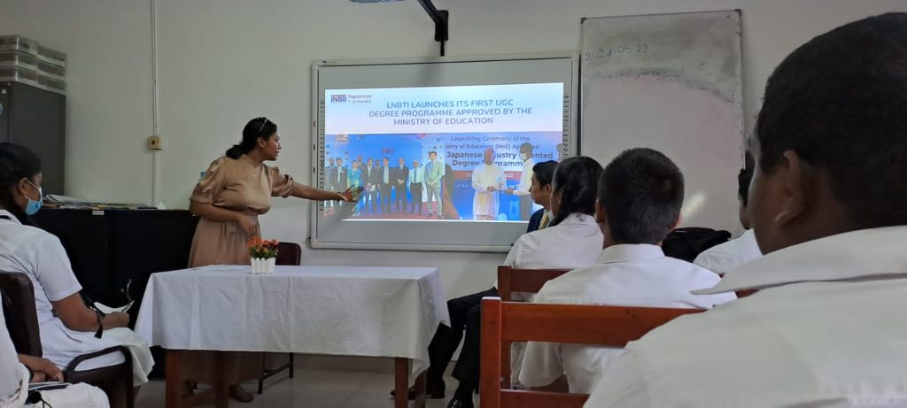 LNBTI Japanese IT University embarked on a school visit to Pannipitiya Dharmapala Vidyalaya on 29th August 2023. The purpose of this visit was to engage with the A/L Japanese and ICT students along with their teachers and the Vice Principals to discuss the benefits of studying at LNBTI and the potential career opportunities it offers.